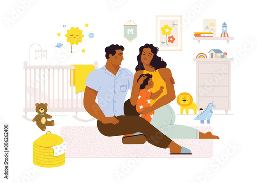 Šťastný otec a dcera se těší malování doma, ploché vektorové ilustrace. Táta a dítě baví trávit čas společně. Vztah rodičů a dětí, otcovství a rodičovství. Aktivita Den otců.