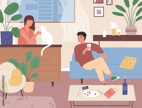 Šťastný otec a dcera se těší malování doma, ploché vektorové ilustrace. Táta a dítě baví trávit čas společně. Vztah rodičů a dětí, otcovství a rodičovství. Aktivita Den otců.