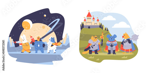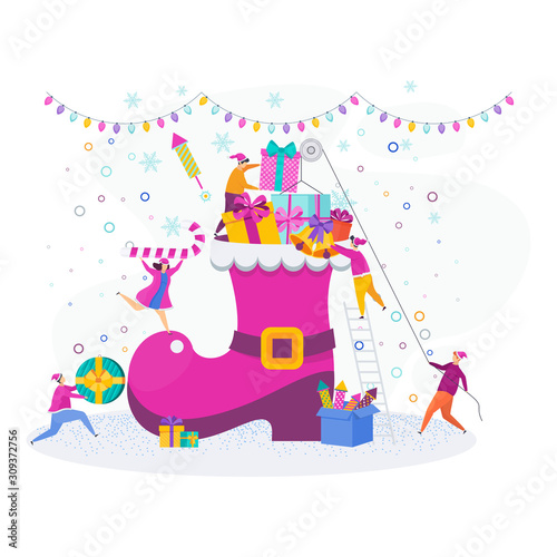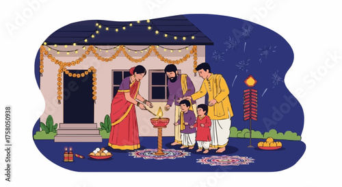 Veselé velikonoční svátky. Rodina malovat barevné velikonoční vajíčko a připravit se na oslavu. Vektorové ilustrace na bílém pozadí.