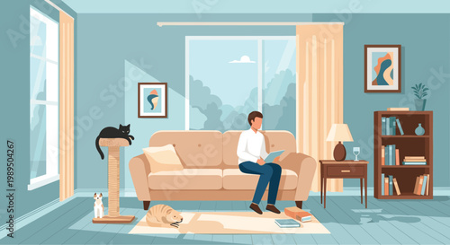 Šťastný čeká pár dělá míč cvičení doma, ploché vektorové ilustrace. Těhotenství, práce, fitball cvičení.