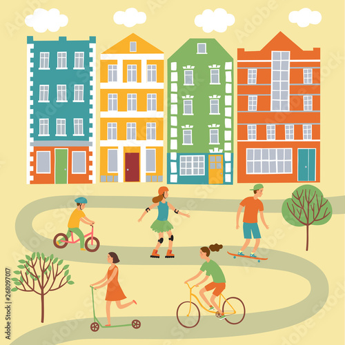 Šťastná rodina se těší bbq piknik párty na chalupě dvorku vektorové ilustrace. Rodiče a děti tráví čas společně vaření, chatování, jíst provádění rekreačních aktivit venku