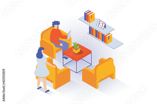 Šťastná rodina izometrická sada ikon, plochá vektorová izolovaná ilustrace. Otec, matka a dítě sledují film a dělají sušenky. Rodinný životní styl a vztah.