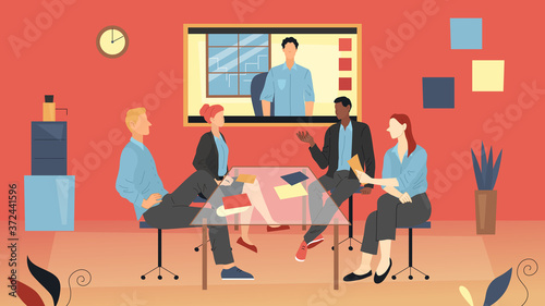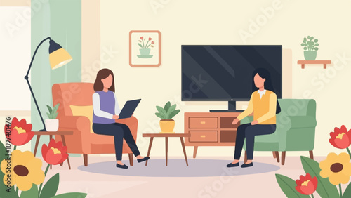 Šťastná rodina se stěhuje do nového domova, plochá vektorová ilustrace. Lidé balí věci do lepenkových krabic v obývacím pokoji. Stěhování a přemístění.