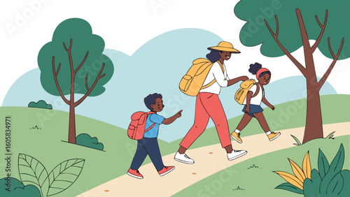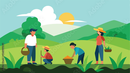 Šťastná rodina Sbírání hub v lese vektorové ilustrace. Veselý vzrušený rodič a dítě našli lesní louku s jedlou houbou. Víkend sparetime společně venku na podzim