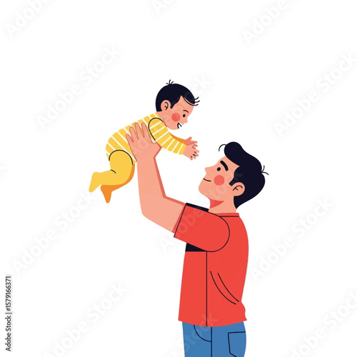 Šťastná rodina pop art vektorové ilustrace. Otec se synem retro styl koncepce.