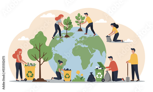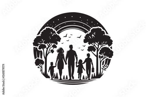 Šťastná rodina návštěva zoo, vektorové ilustrace. Papír řezané řemeslné styl otec, matka a dítě při pohledu na žirafa, opice, jelen, medvědi koala, slon divoká zvířata siluety. Zvířata v Zoo.