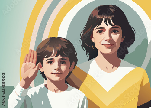 Šťastná rodina s dítětem. Vektorová ilustrace v retro komiksovém pop art stylu. Koncept rodiny.