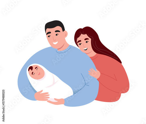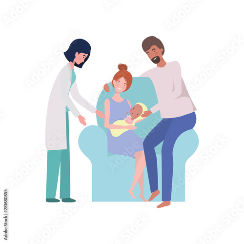 Šťastná rodina s matkou kojení dítě vektorové ikony izolovaných na bílém pozadí