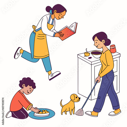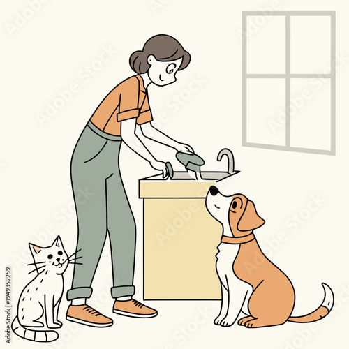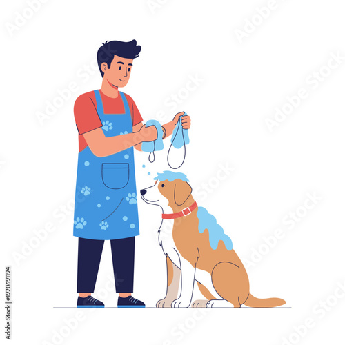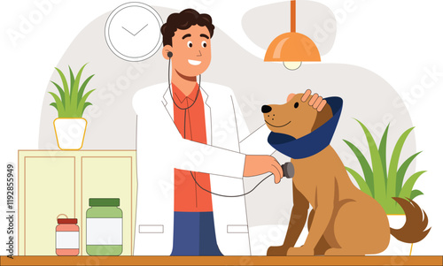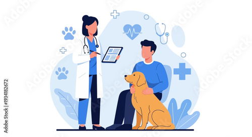 Šťastný otec a dcera na pet shelter vektorové ikony izolované pozadí.