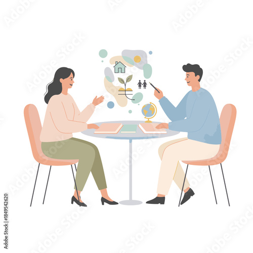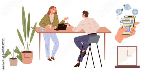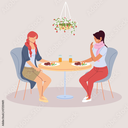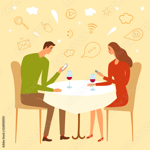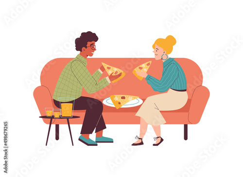 Šťastní přátelé jíst pizzu spolu sedí u stolu v pizzerii vektorové ilustrace. Kluci pár těší rychlé občerstvení a relaxaci v restauraci na oběd a pěkný rozhovor