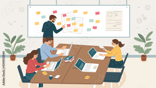 Šťastná dívka, umělkyně na volné noze, grafička, ilustrátorka pracující na přenosném počítači z domácí kanceláře, plochá vektorová ilustrace. Na volné noze, kreativní práce na dálku, domácí pracoviště.