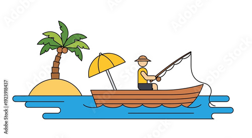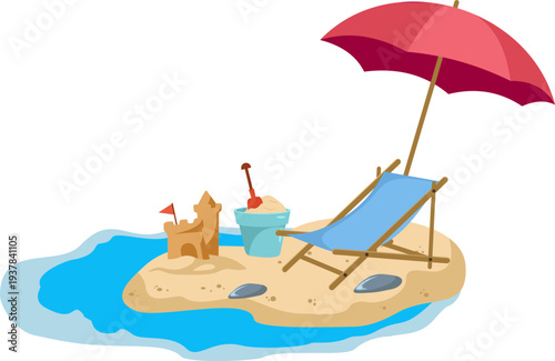 Šťastná dívka, na volné noze pracuje na přenosném počítači sedí na lehátko na pláži, ploché vektorové ilustrace. Na volné noze, relax, venkovní práce na dálku, letní dovolená.