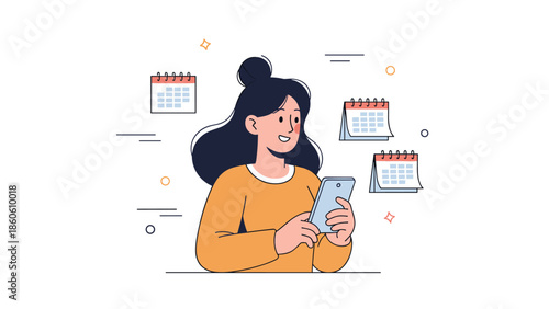 Žena, která provádí online platby kreditní kartou, ploché vektorové ilustrace. Šťastná dívka nakupuje oblečení, potraviny a další zboží na internetu pomocí mobilního telefonu. E-commerce, internetový obchod.