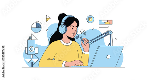 Žena, která provádí online platby kreditní kartou, ploché vektorové ilustrace. Šťastná dívka nakupuje oblečení, potraviny a další zboží na internetu pomocí mobilního telefonu. E-commerce, internetový obchod.