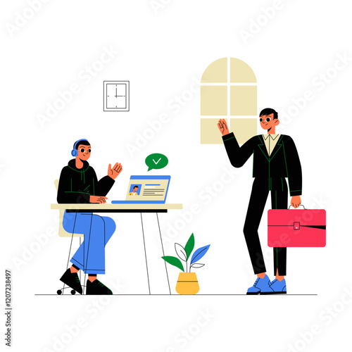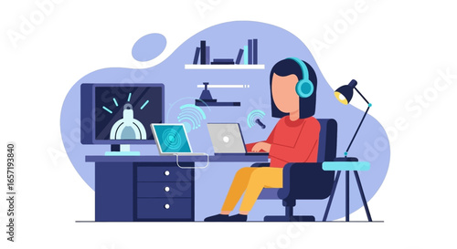 Mladá žena se těší nakupování. Šťastná dívka se spoustou nákupních tašek v módním butiku, plochá vektorová ilustrace. Dámské oblečení maloobchodní obchod podnikání.