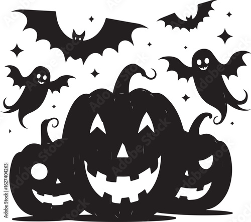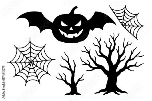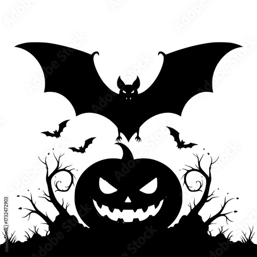 Šťastný Halloween banner. 30-31 Říjen dovolená vektor. Pozvánka na podzimní večírek. Šablona záhlaví webových stránek se strašidelnou dýní, pavučinou a ilustrací létajícího netopýra