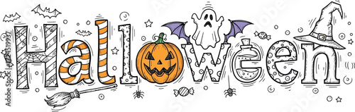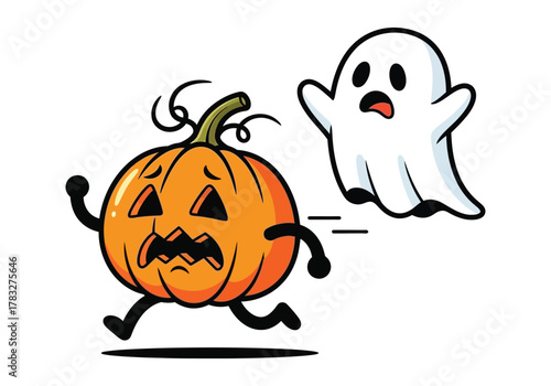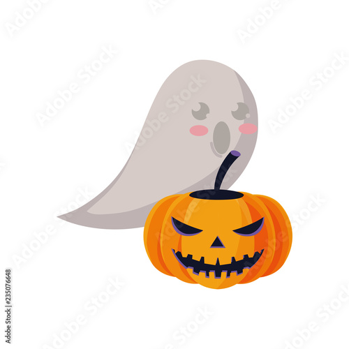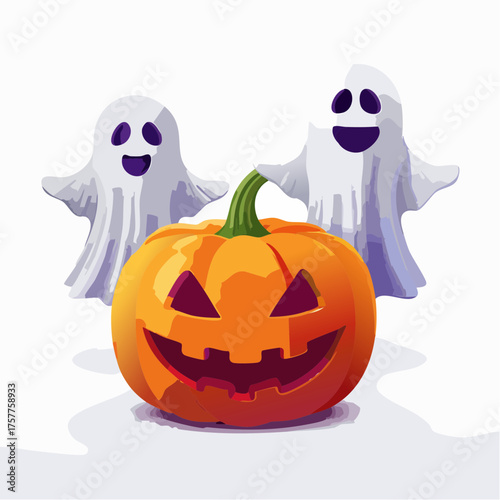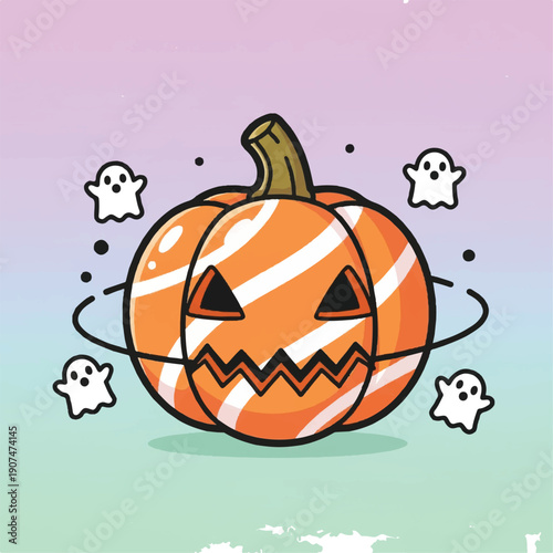 Obrovské děsivé dýně a šťastné mužské a ženské postavy baví, vektorové ilustrace. Šťastný Halloween koncept pro webový banner, webové stránky atd.