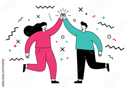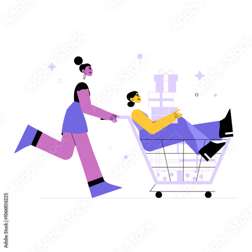 Kočka sedící na obrovském duchu, létající netopýři a šťastné mužské a ženské postavy, vektorová ilustrace. Šťastný Halloween koncept pro webový banner, webové stránky atd.