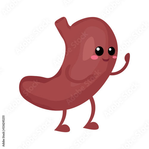 Šťastný žaludek vektor. Zdravý vnitřní lidský trávicí orgán charakter dobrý pocit ikona ilustrace izolovaných na bílém pozadí