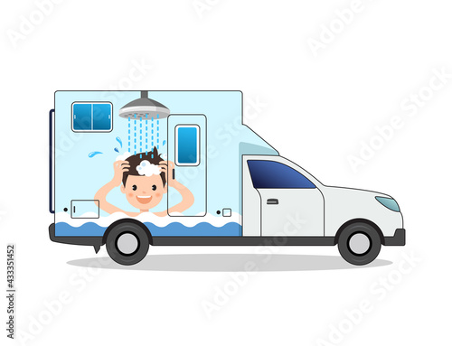 Šťastný muž a žena se svými auty, ploché vektorové ilustrace. Majitel a řidič mužský charakter upevnění, mytí jeho auto s vodní hadicí, žena jít nakupovat automobilem. Koncept lidí a aut.