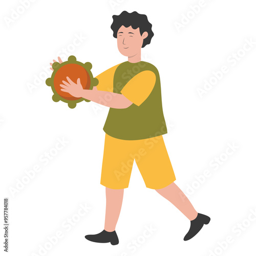 Šťastný muž farmář charakter nesoucí dřevěnou bednu s zralé fuit nebo zeleniny vektorové ikony izolovaných na bílém pozadí.