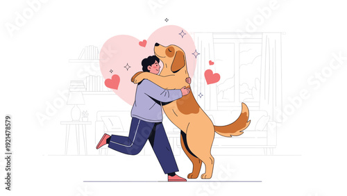 Šťastná matka si doma hraje se synem a psem, ploché vektorové ilustrace. Máma a dítě tráví čas společně. Vztah rodičů a dětí, šťastné mateřství a rodičovství.