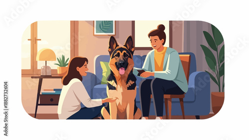 Šťastná matka čtení knihy s dcerou sedí na koberci v obývacím pokoji, ploché vektorové ilustrace. Máma a dítě tráví čas společně. Vztah rodičů a dětí, šťastné mateřství a rodičovství.