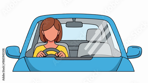 Šťastná matka se synem sedí uvnitř auta, ploché vektorové ilustrace. Máma řídí auto, cestuje společně se svým dítětem. Rodinný výlet. Letní prázdniny, víkend.