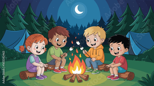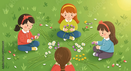 Šťastná mnohonárodnostní rodina ležící na trávě v parku. Multikulturní rodinná koncepce vektorové ilustrace. Černoška a běloch se dvěma smíšenými dětmi. Letní rodinný čas.