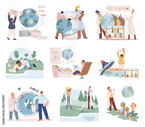 Mužské a ženské postavy vaření v kuchyni, vektorové ploché ilustrace izolované na bílém pozadí. Šťastná žena v domácnosti, máma, rodinné páry připravují jídlo doma. Vaření hobby, domácí jídlo.