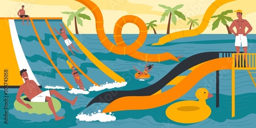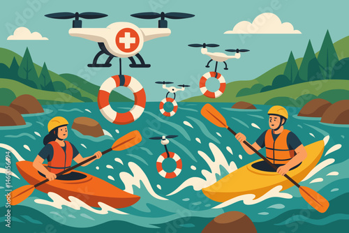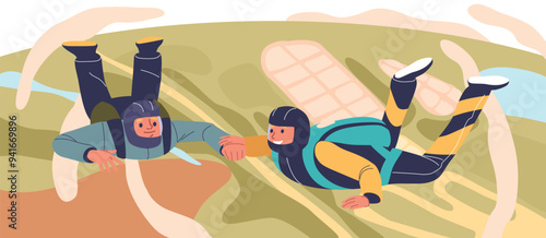 Šťastní lidé se těší padák sport a seskoky scéna set. Aktivní muž a žena v letu pozastavení ve vzduchu vektorové ilustrace. Radostný člověk během extrémního volného času