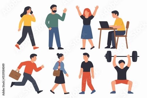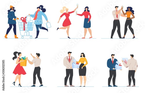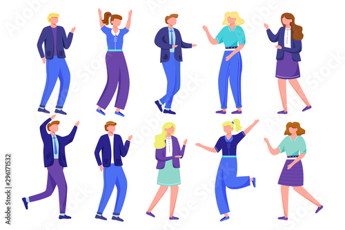 Šťastní lidé si navzájem dávají vysoké pětky, vektorové ploché izolované ilustrace. High Five ruční gesto mezi muži ženy děti přátelé, matka a syn, obchodní lidé vyjadřující radost. Přátelství, úspěch.