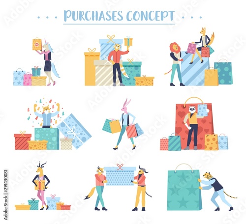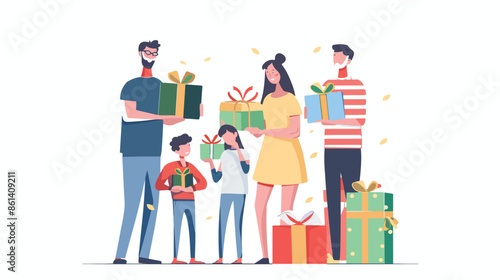 Šťastný Nový rok vektor plakát. Nadšení veselí lidé na sobě santa klobouk baví slaví tradiční zimní dovolenou. Různé drobné dospělé, osoby se zdravotním postižením a děti nad písmeny