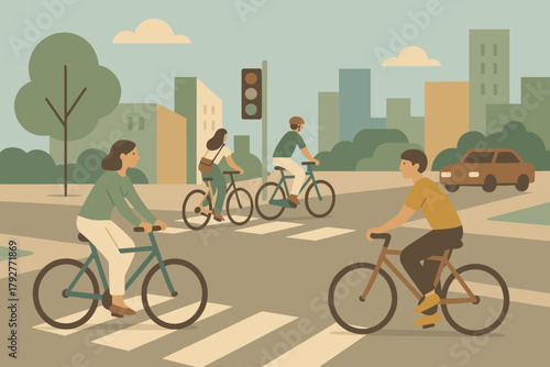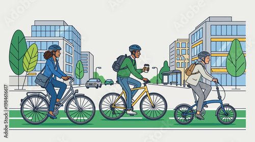 Šťastní lidé na kole, procházky se psem, pořizování selfie v městském parku, plochá vektorová ilustrace. Venkovní volnočasová aktivita.