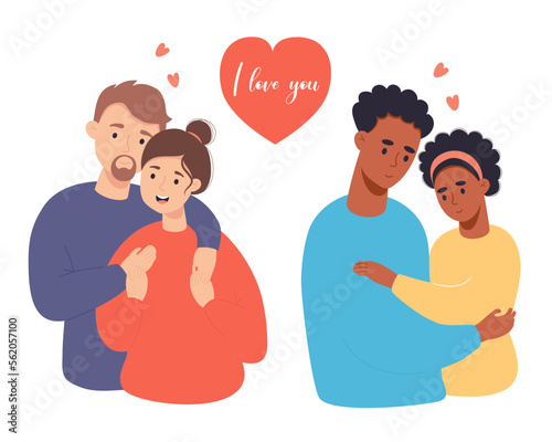 Šťastní majitelé domácích mazlíčků s roztomilým štěnětem a kotětem, ploché vektorové ilustrace. Dívka a chlapec mazlení, objímání psa a kočky, jejich nejlepší zvířecí přátelé. Vlastnictví domácích zvířat, péče o domácí zvířata, láska.