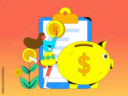 Symbol Hashtag a závislý na sociálních sítích žena v smartphonu, ploché vektorové ilustrace. Závislost na sociálních médiích.