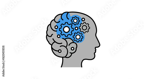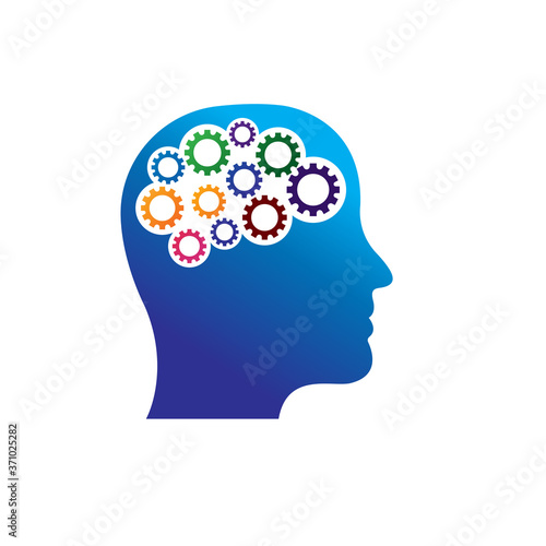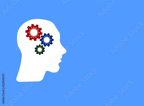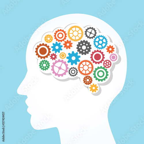 Siluety hlavy muže a ženy s ozubenými koly a květinami uvnitř. Vektorové ilustrace ve stylu papírového umění.