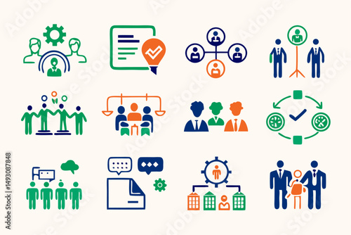 Vektorový soubor zdravotnického personálu poskytujícího zdravotní péči pacientům. Chirurg připraven k provozu svého pacienta, hostující lékař terapeut plochý styl designové prvky, ikony izolované na bílém pozadí.