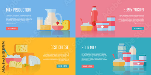 Zdravé jídlo a vyvážená dávka. Kuřecí maso a ryby, mléčné výrobky, mléko, vejce. Vektorové webové stránky design šablony. Ilustrace konceptu webové stránky vstupní stránky.