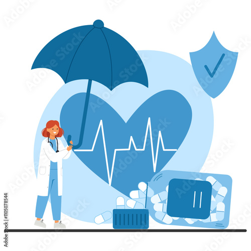 Ilustrace vektorového konceptu analýzy srdeční aktivity. Elektrokardiografie, EKG nebo EKG postup s postavami pacientky a zdravotnického personálu. Zdravotní péče, kardiologie, složení vyšetření srdce.