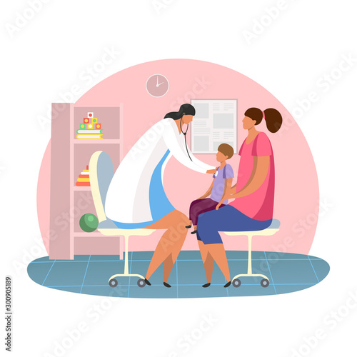 Drobní lékaři, kteří nosí obličejové masky, spěchají, aby pomohli nemocné ženě sedící uvnitř kulaté koule s šálkem čaje, vektorová plochá ilustrace. Lékařská pomoc a péče o nemocného pacienta, boj proti viru corona.