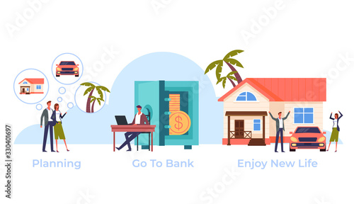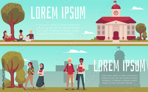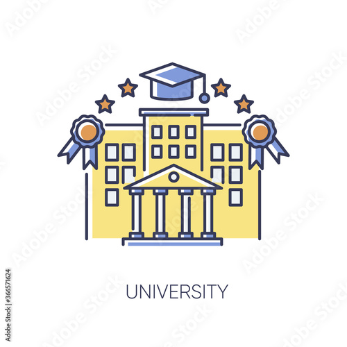 Higher education concept vektorové ilustrace, plochý lineární styl designu. Mladí lidé, kteří vstupují na univerzitu, absolvují it a získají dobrou práci. Koncept univerzitního dopravního pásu.