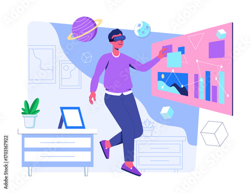 Hipster man dostat sms spam a marketingové zprávy, prodej a sleva. Muž sledovat TV shop, telemarketing koncept ilustrace. Vektor web design šablony. Vstupní stránka webové stránky ilustrace.