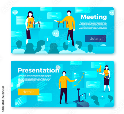 Pronájem web banner šablony set. Vektorové ploché ilustrace. Zaměstnavatel a kandidáti s životopisem nebo životopisem. Zaměstnanost, nabídka práce, nábor, hr management, koncepce.
