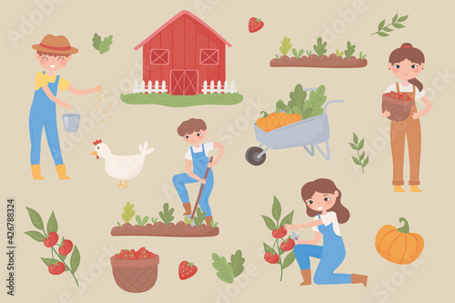 Hobby vstupní stránka design, webové stránky banner šablona set, plochý vektor ilustrace. Lidé si užívají své koníčky. Šťastné ženy, které se starají o pokojové rostliny, si vybírají látku pro šití a zkoušejí ji na figuríně.