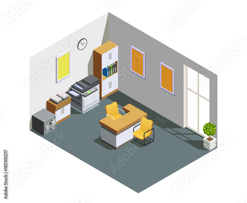 Koncept opravy domácích spotřebičů. Vektor izometrické výřez kuchyně interiér s opravář servisní středisko zaměstnanec opravy nebo instalace elektrický sporák.