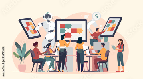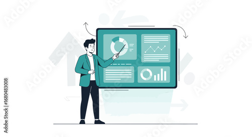 Nabídky domácích a kuchyňských spotřebičů, slevy, vektorové ilustrace. Koncept prodeje vybavení domácnosti s mikro znaky prodavač, muž kupuje obrovský televizor pomocí kreditní karty.