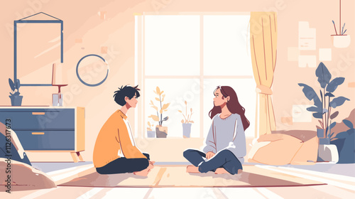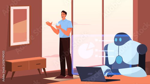Domácí úklid scéna, flat vector ilustrace. Profesionální čistší pracovní postavy dělají domácí práce. Lidé úklid kuchyně, vysávání podlahy, mytí nádobí. Úklid a mytí nádobí.