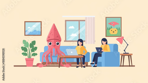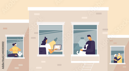 Vektorová sada konceptů dodávky domů plochý styl designových prvků. Pracovnice restaurace žena přijímá objednávku telefonicky, kurýr doručuje jídlo a pár sedí na pohovce a objednává online pomocí notebooku.