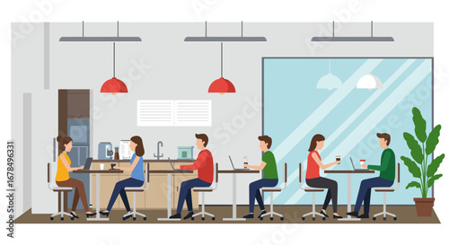 Domov pro osoby se zdravotním postižením. Dobrovolníci přinášejí jídlo, knihy, pomáhají lidem na invalidním vozíku pohybovat se, ploché vektorové ilustrace. Dobrovolnictví, charita.